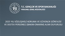 2025 YILI SÖZLEŞMELİ KORUMA VE GÜVENLİK GÖREVLİSİ VE DESTEK PERSONELİ (BAKIM-ONARIM) ALIMI DUYURUSU