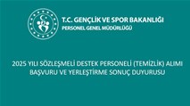 2025 YILI SÖZLEŞMELİ DESTEK PERSONELİ (TEMİZLİK) ALIMI BAŞVURU VE YERLEŞTİRME SONUÇ DUYURUSU