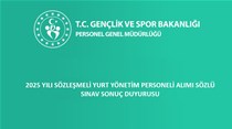 2025 YILI SÖZLEŞMELİ YURT YÖNETİM PERSONELİ ALIMI SÖZLÜ SINAV SONUÇ DUYURUSU